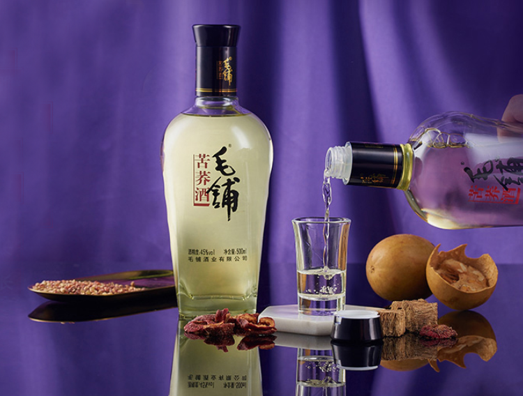毛鋪苦蕎酒,采用傳統釀造工藝與中藥提取技術相結合,使用清香型、濃香型和醬香型白酒,且融入具有藥食兩用的苦蕎麥、葛根、枸杞等中藥材。